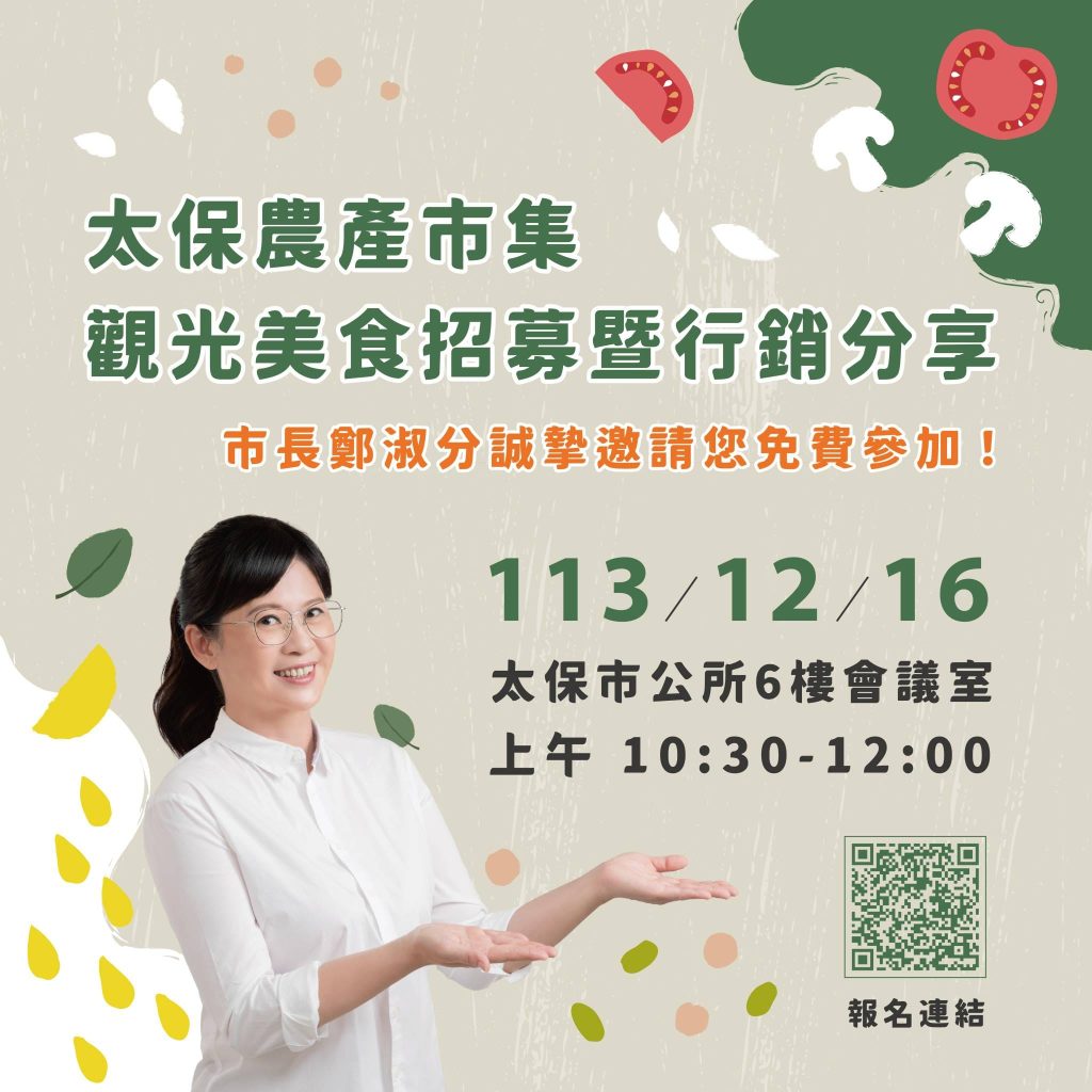 太保農產市集~觀光美食招募暨行銷分享!活動免費,阿分市長誠摯邀請您參加。名額有限,請儘速報名⚡