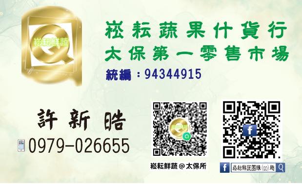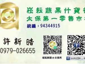 店家名稱|崧耘蔬果什貨行 營業項目|農特產品 營業地址|嘉義縣太保市安仁里公園北街1號1樓之1 服務專線|0979026655 營業時間|無 訂購方式|現場選購.社群訂購.電話訂購 店家網站|崧耘鮮蔬團購Go趣 Facebook 專頁 店家介紹|提供優質蔬果讓在地嘉人買得開心吃得放心.下午提供給辛苦上班一天的嘉人便利快捷的購菜方式~